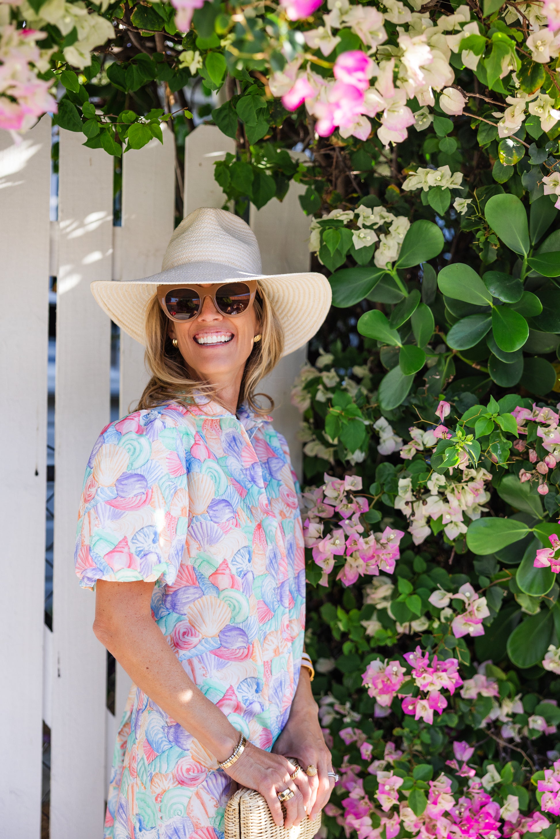 The Paloma Dress captures the timeless charm of Old Florida. A sister silhouette to the Palma Dress, it now features a slightly roomier fit, stand collar, and fuller puff sleeves. This exclusive print, inspired by vintage seashells, evokes memories of cherished family beach days from the past.